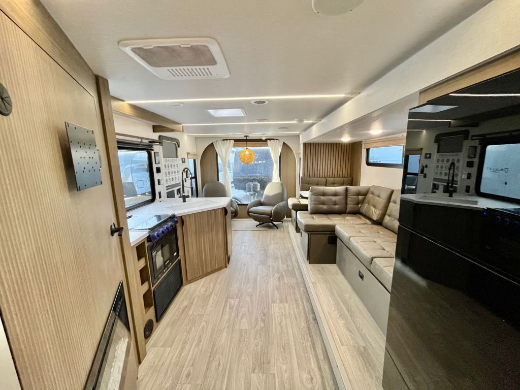 • Best in Class Value Package: Versa Furniture, Stow N Go Storage Solution, MorRydeTM StepAbove Triple Step (Entry Door), TFL Cabinet Doors, Roof Mount Solar Prep, Adjustable Textured Roller Shades, Backlit Radius Bathroom Mirror, Built-In Laundry Hamper in Bedroom, Back-Up Camera Prep, JBL Stereo, Flush Floor Slide-Out w/Marine Grade Flooring, Exterior Accent Lighting, Dimmable Interior LED "Blade Lighting" (Living Area), Heated & Enclosed Accessibelly, LED "Blade Lighting" Under Awning, 60K On-Demand Tankless Water Heater, 5/8” Tongue & Groove Plywood Floor Decking, Tufflex™ PVC Roofing, Powder Coated I-Beam Frame, 3/8” Roof Decking (Walk-On), Cambered Chassis, Nitrogen Filled Tires, 2” Wall Construction, 16” (or less) on Center, Aerodynamic Front Radius Profile, .040 Smooth Aluminum Front Cap, 5” Bowed Truss Roof Rafters, 2” x 3” Floor Joists 12” on Center, 13 Ply Cross Micro-Laminated Beam Header Above Slide-Out, Seamless Holding Tanks, Color Coded Water Lines